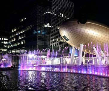 多様な景観照明を活用し、温かく快適なリラクゼーション空間を演出。また、水景照明を用いることで、噴水や水の景観に光と影の変化を加え、その観賞価値をさらに高めています。